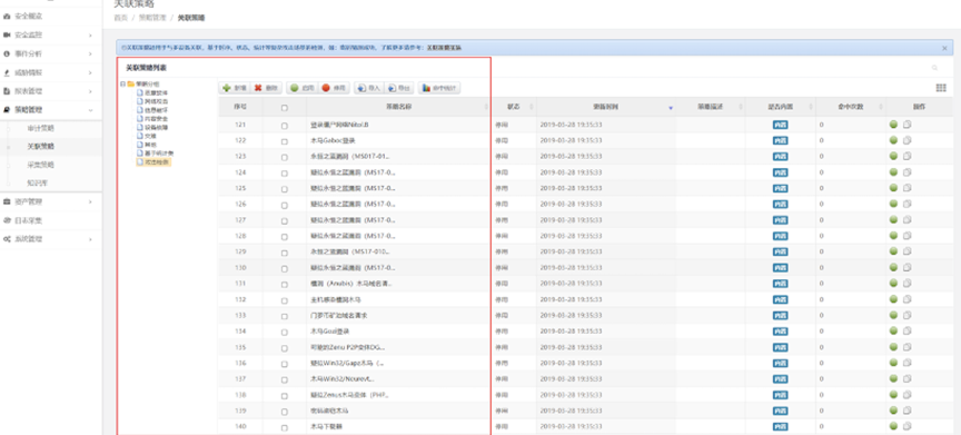 检验日审功能的另一个试金石是关联分析能力。针对日志自动化、集中度、关联度不够的问题,九州酷游 ku游数码DCSSA日志审计系统支持基于规则、统计、情报的分析模型,内置丰富的安全策略模板、高效的实时关联分析能力、灵活的审计策略,充分发挥日志分析及审计机制的最大效力。帮用户实现对日志的关联性处理,让用户能有效处理纷杂无序的日志信息。
